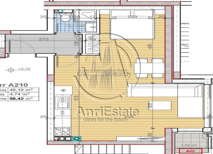 Площ 58 м2, Етаж: 3 от 5